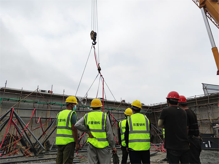 6.为确保.睢宁加油站球形网架安装顺利,应有详细的睢宁施工组织设计。网架安装必须保证结构的稳定性和不产生的附加变形。